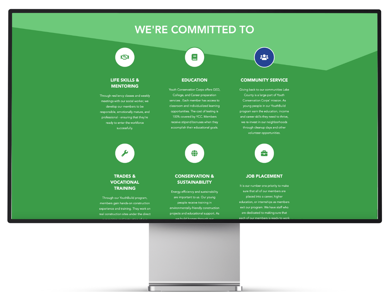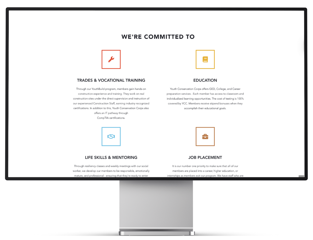 I worked on eight pages and the site’s footer for the YCC website. I created website pages from scratch and redesigned others to strengthen the site’s brand presence.